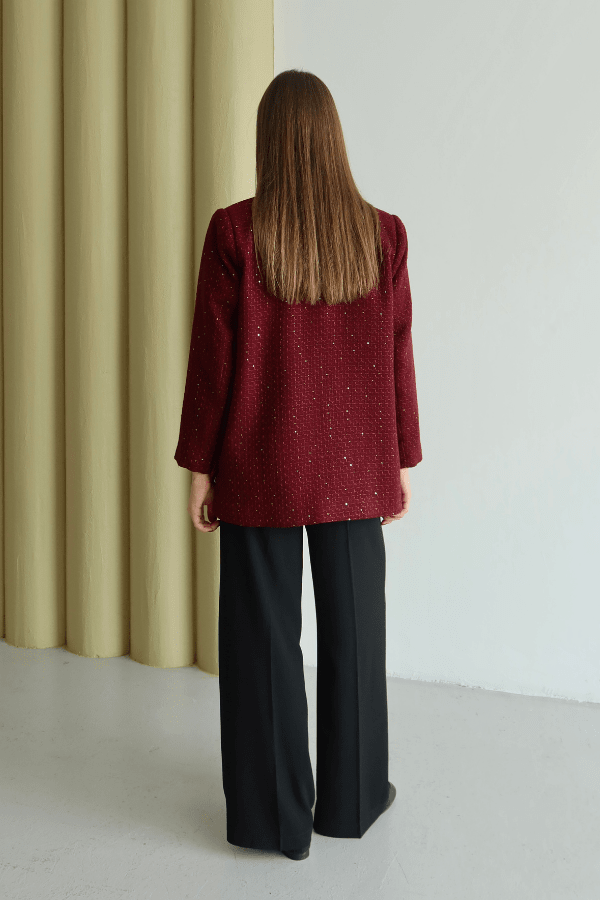 Işıltı Detaylı Tüvit Ceket Bordo