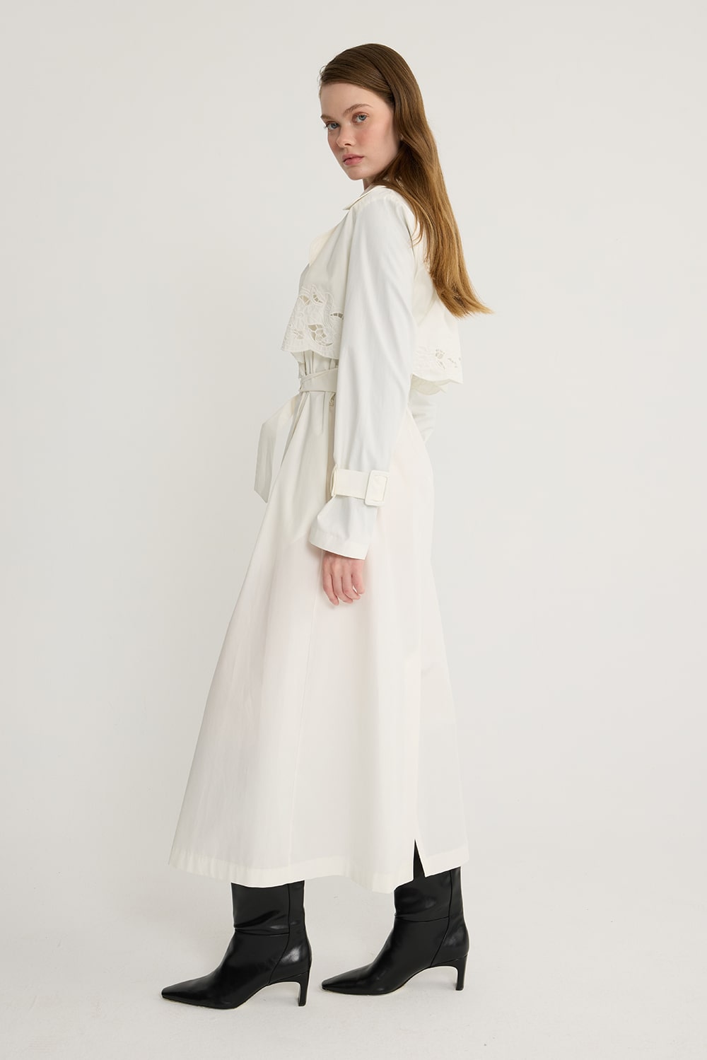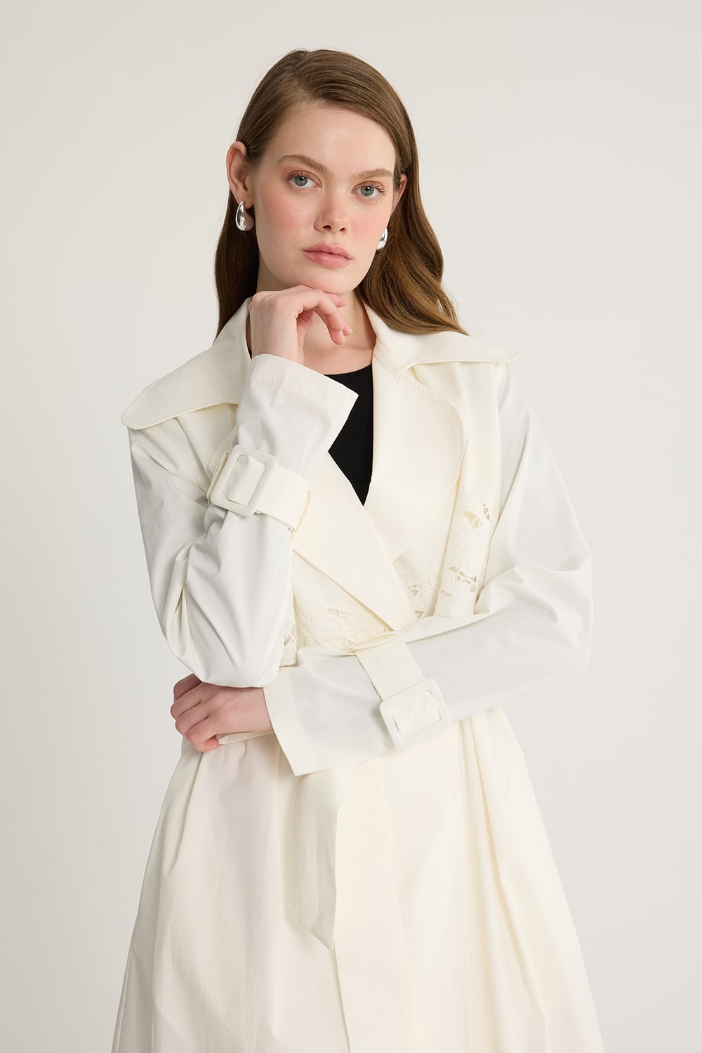 Nakışlı Trenç Ekru