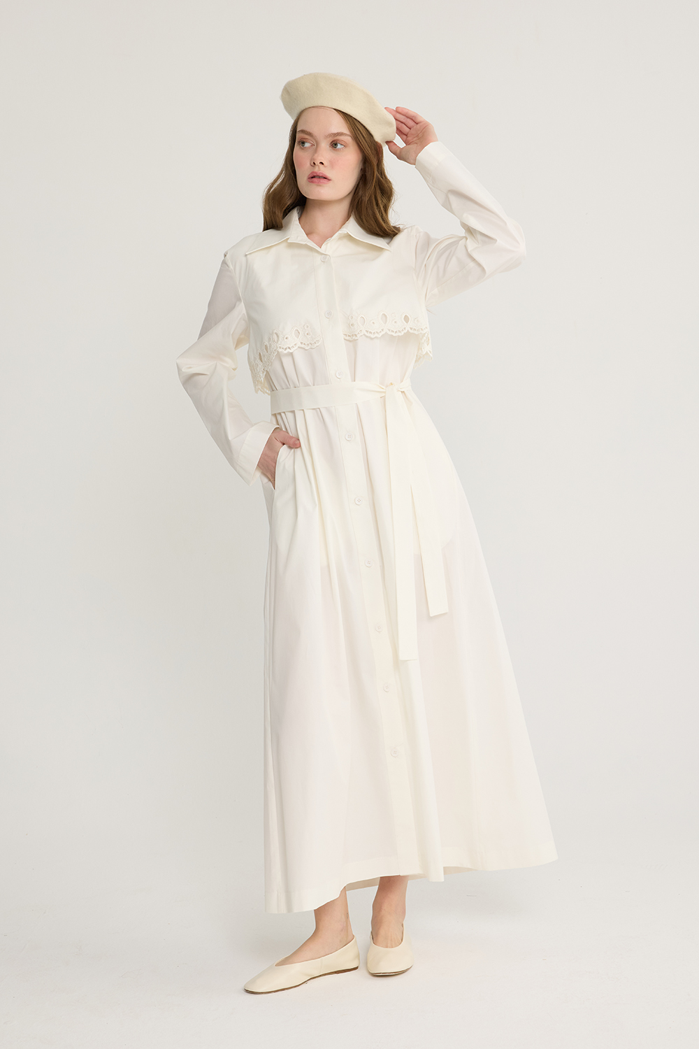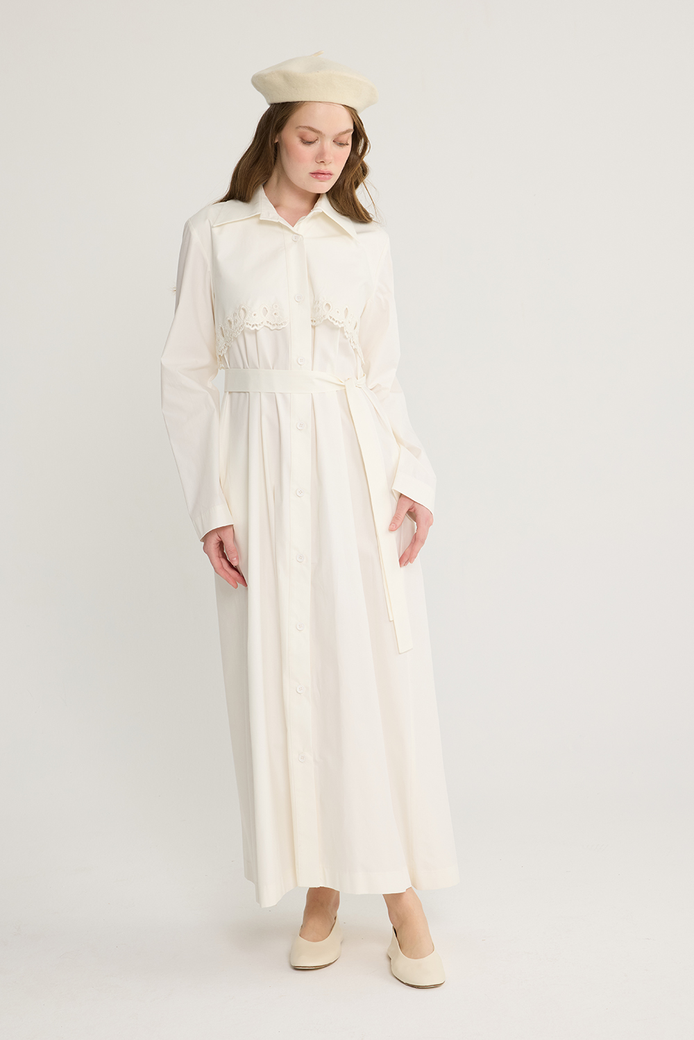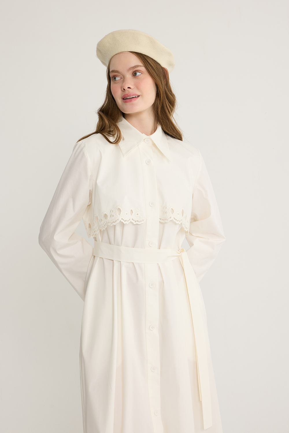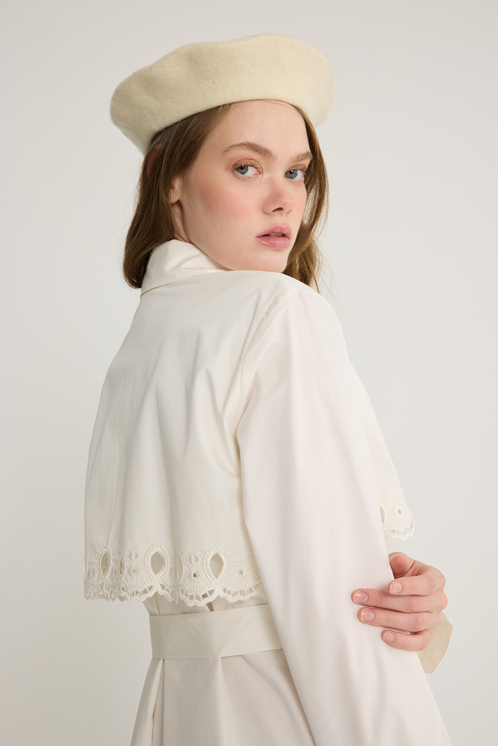 Nakışlı Trenç Elbise Ekru