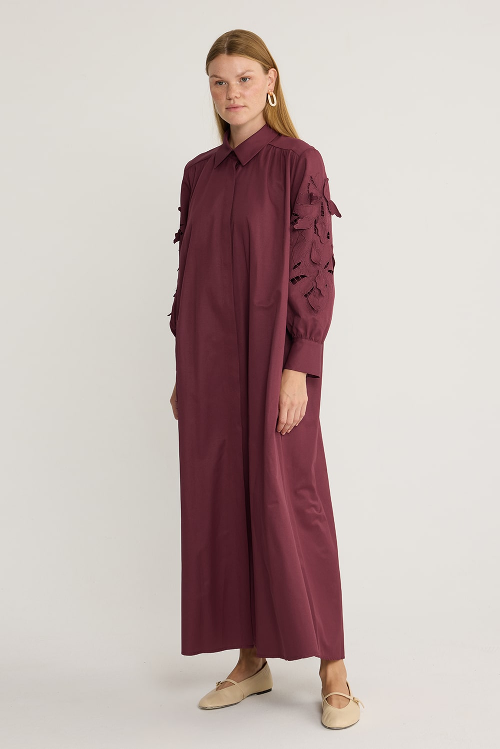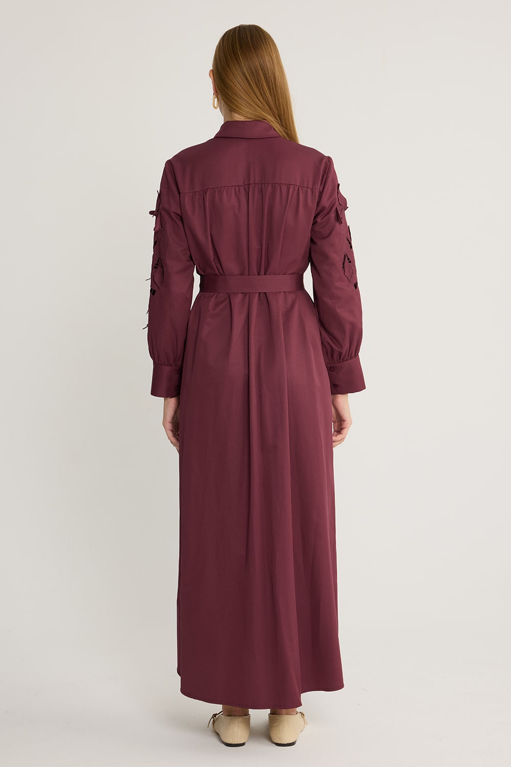 Perla Nakışlı Elbise Bordo