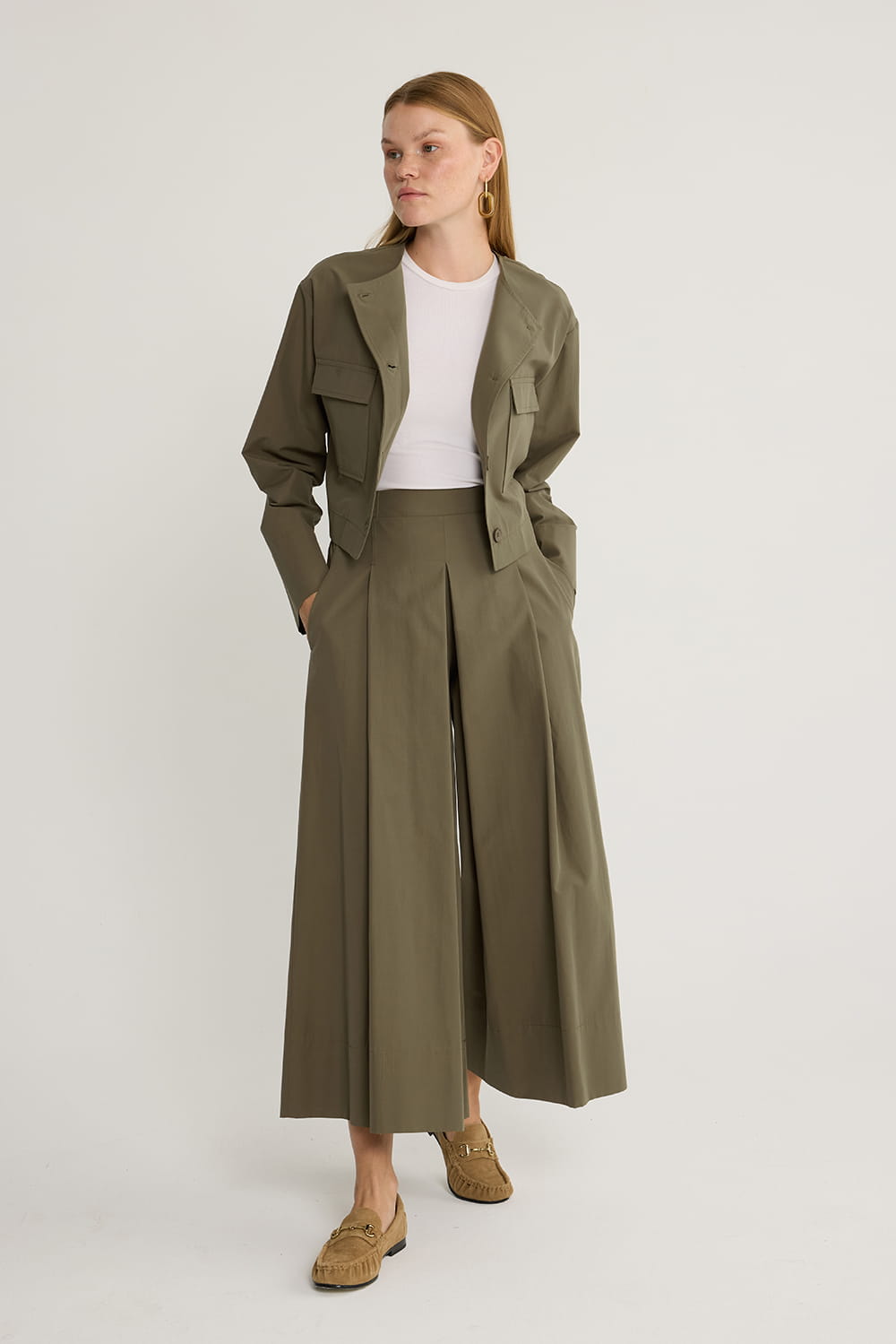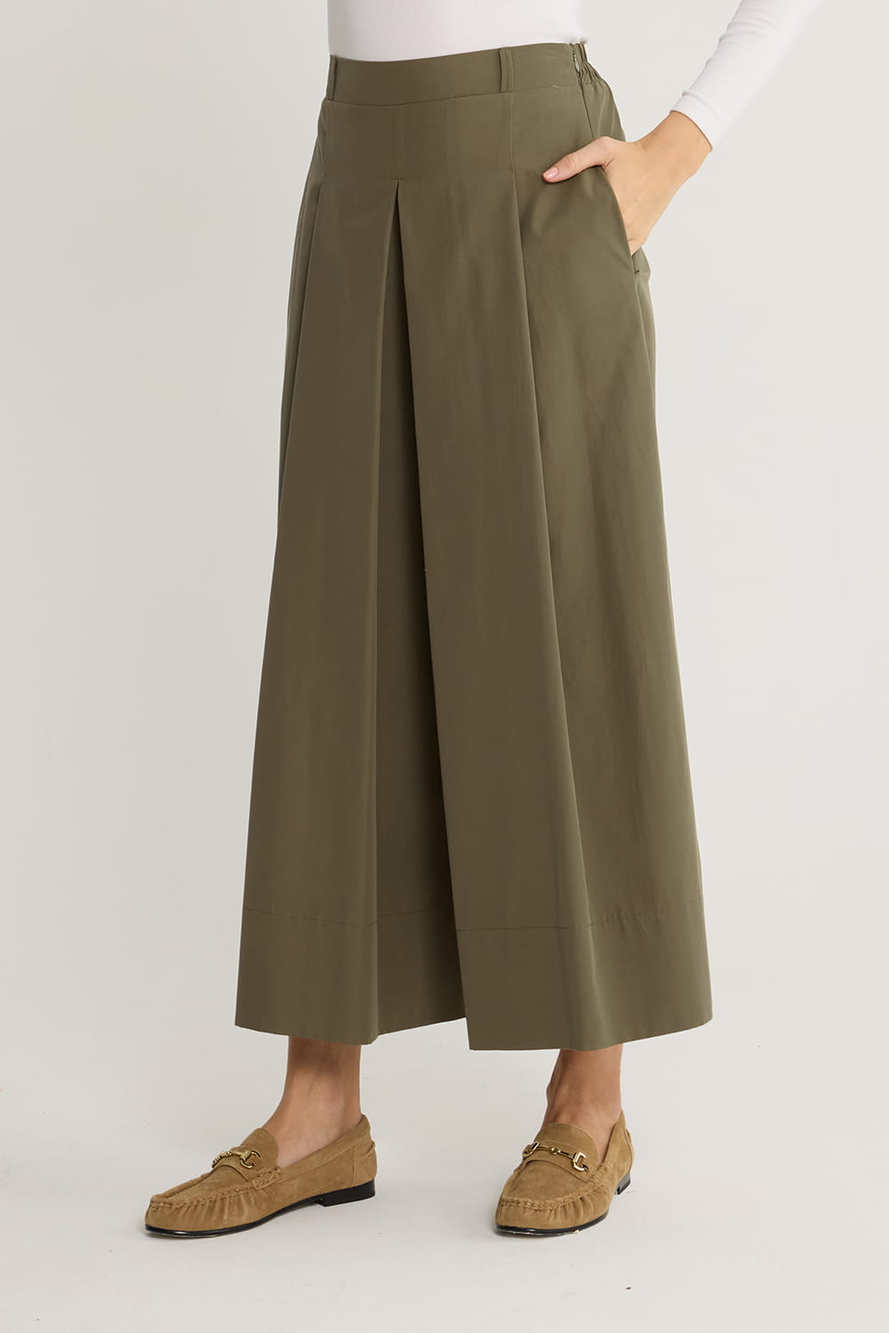 Koton kumaş, cep detaylı, etek formunda bol paça pantolon, pantolon arka bel bölümü lastikli ve yandan gizli fermuarlı.
