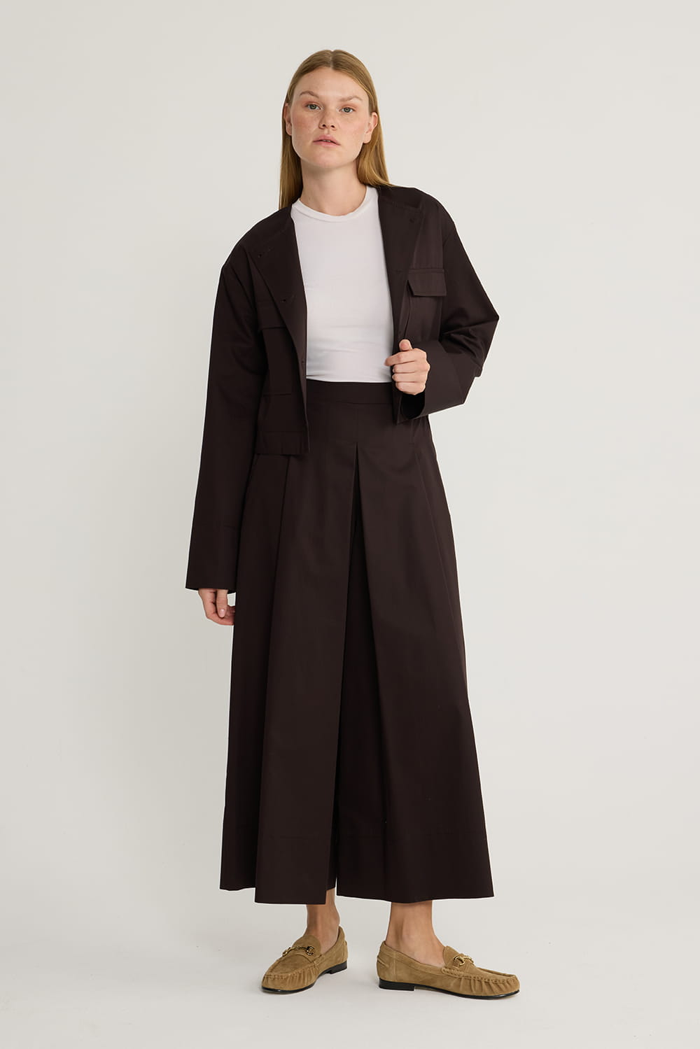 Pileli Pantolon Etek Kahve