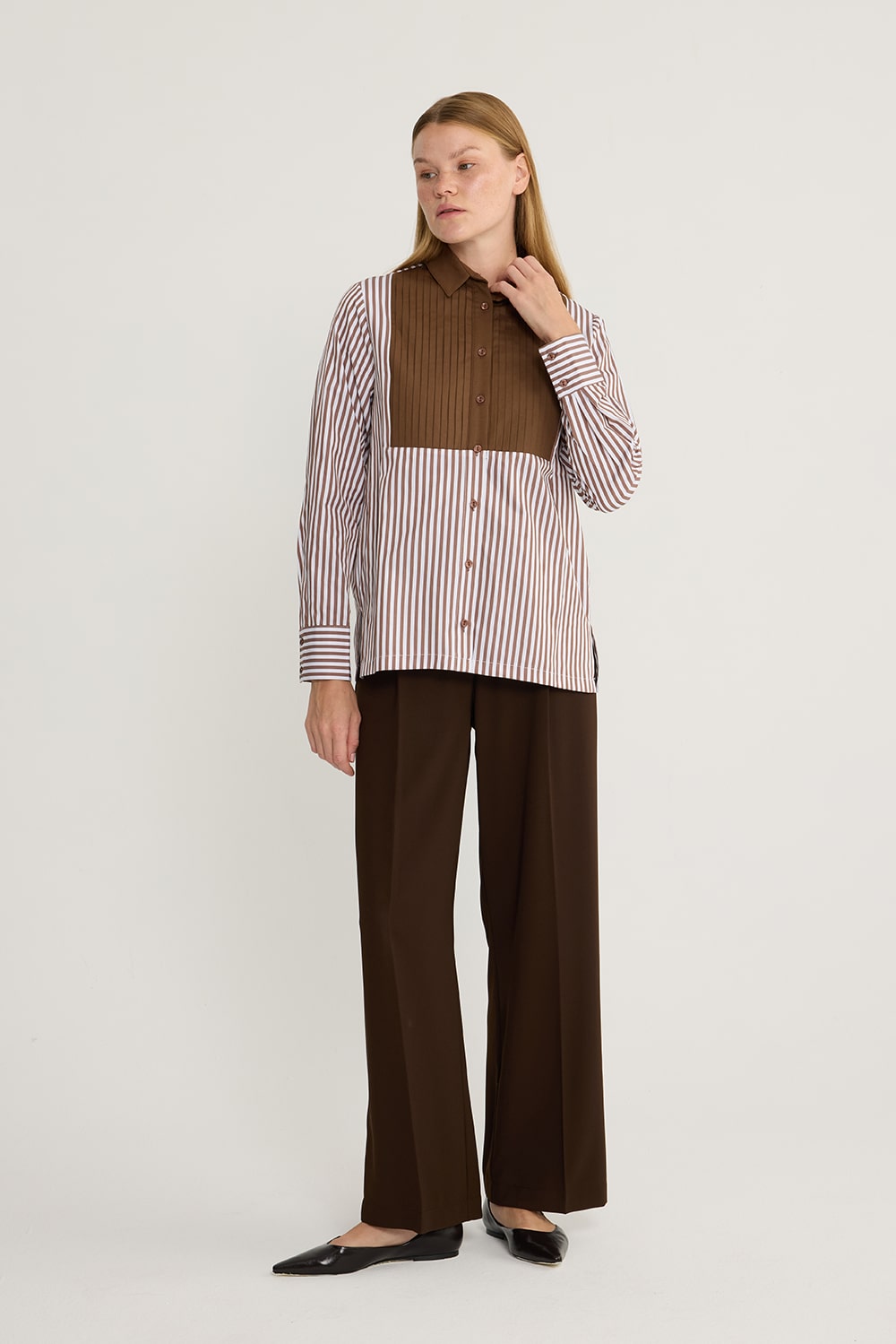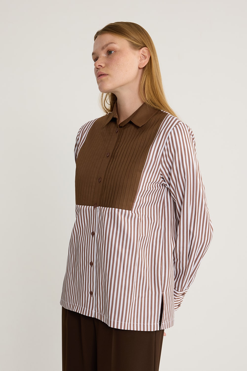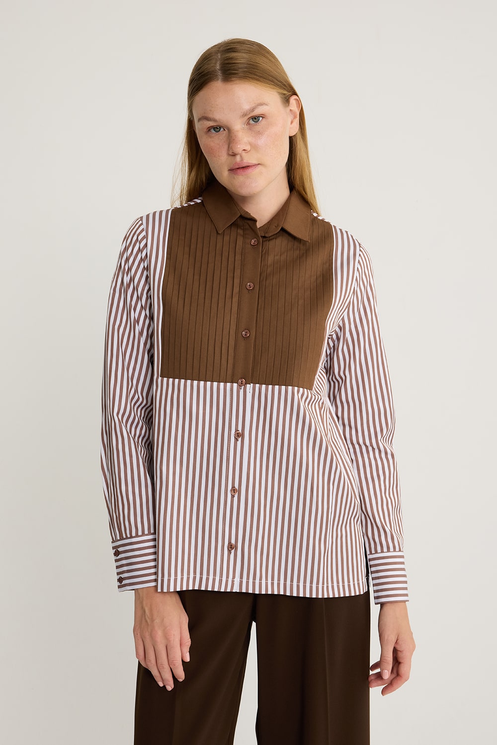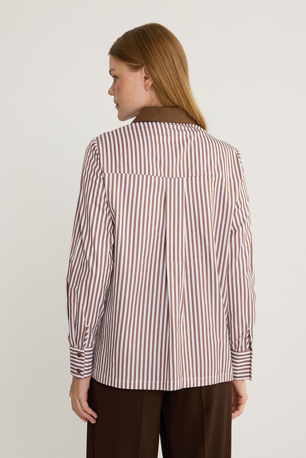 Önü komple düğmeli, kolu manşetli, pamuk poplin kumaş