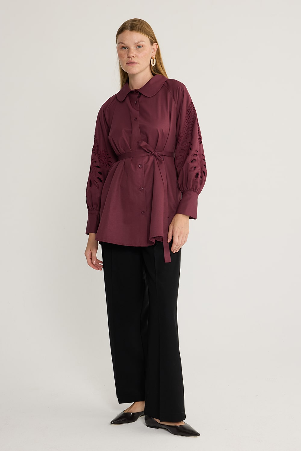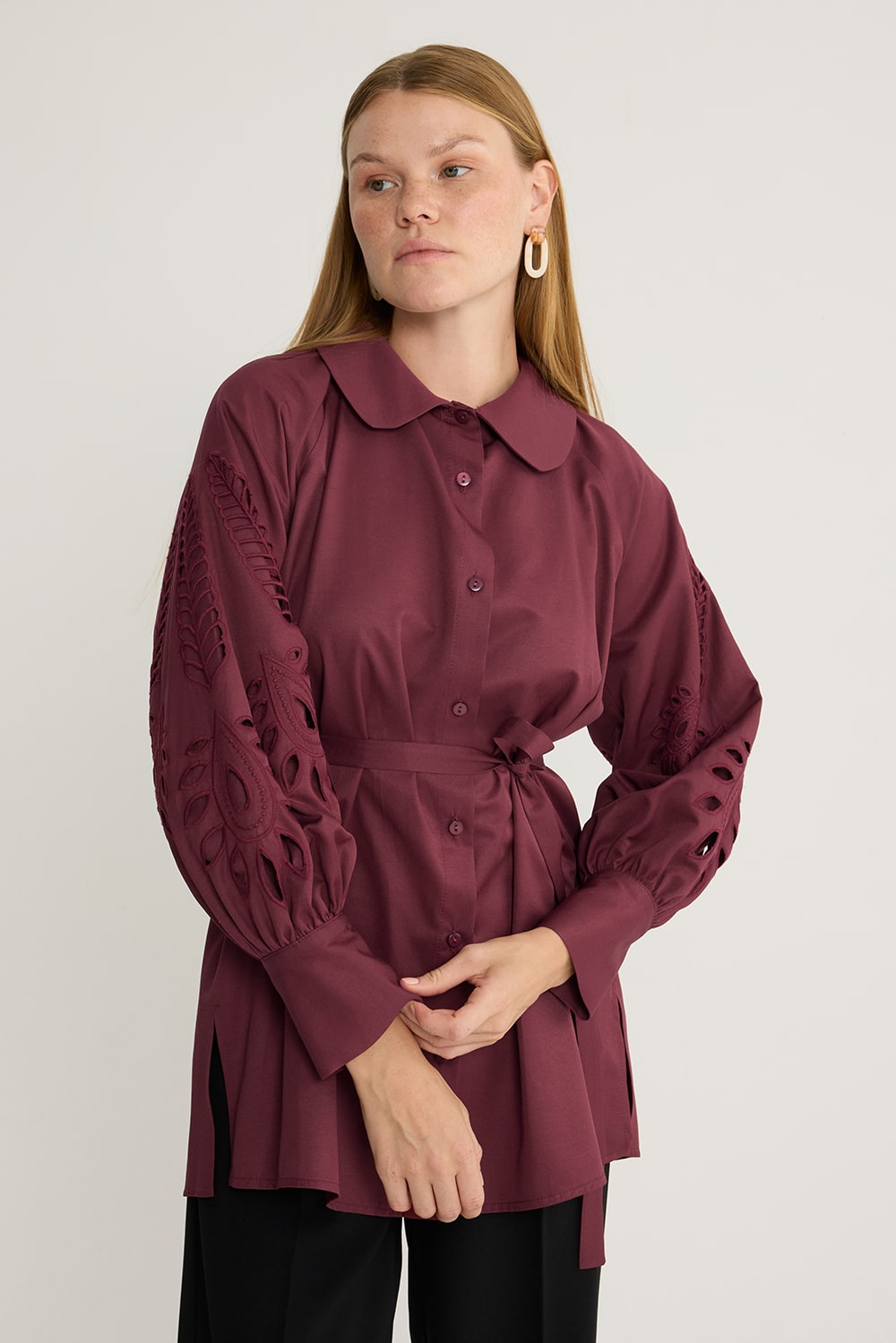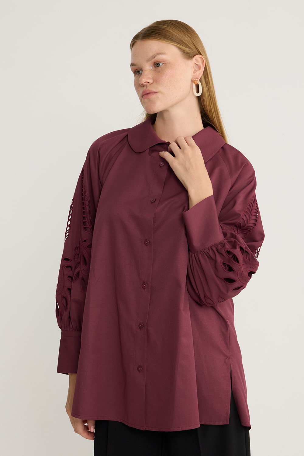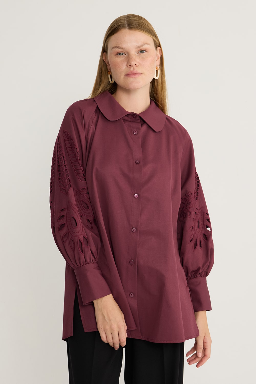 Vina Nakışlı Gömlek Bordo